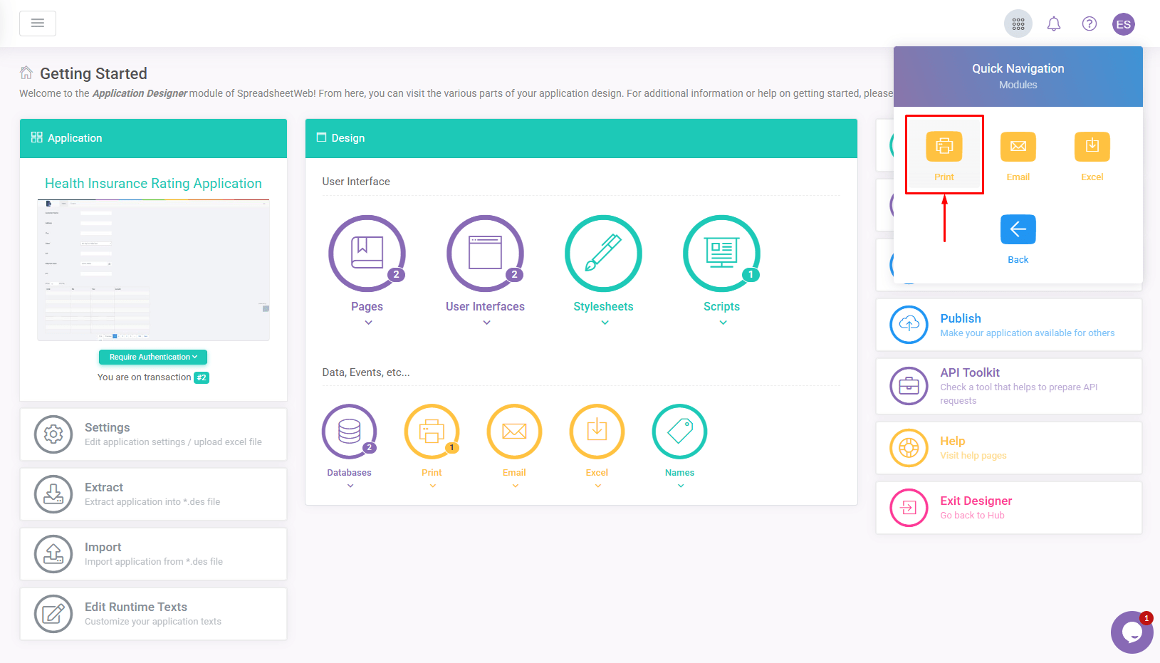 On the next page, click the Print icon to go to the Print Process Designer window.