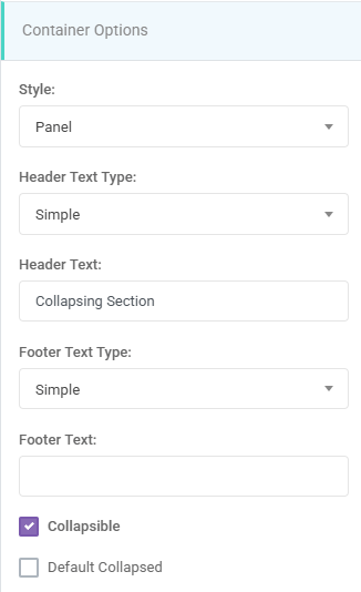 If you select the style Panel and enter any text into the Header Text field, the Container can be made Collapsible.