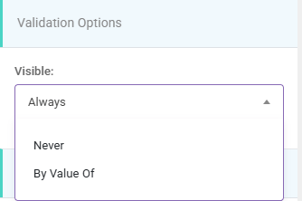The Visible property sets the conditions under which the container will be visible. This can be set to Always or Never or By Value Of (this option is only visible in case when there are boolean named ranges exist in underlined Excel Workbook with TRUE/FALSE values).
