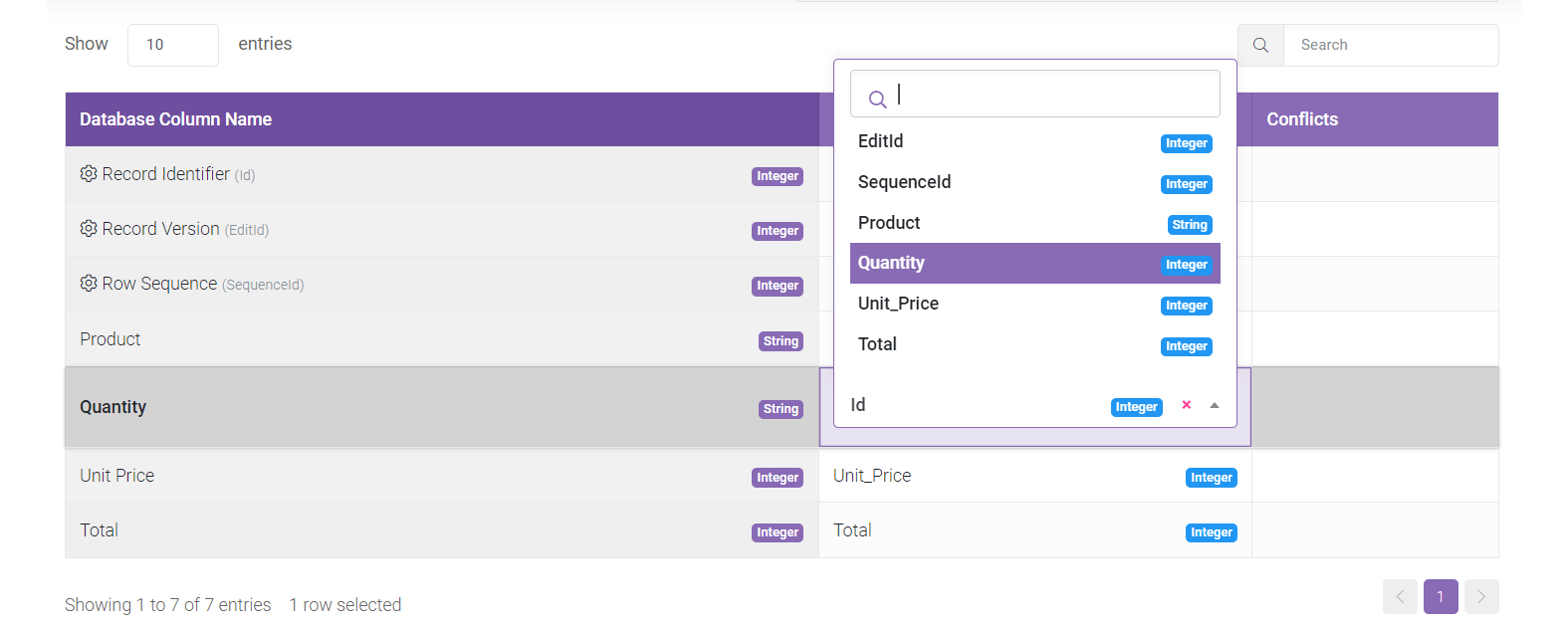 Tip: If the field you are looking for is not among the dropdown options, confirm that the type of the field in the file is compatible with the database counterpart. For example, you can’t assign a field with decimal values into a database field accepting integers.