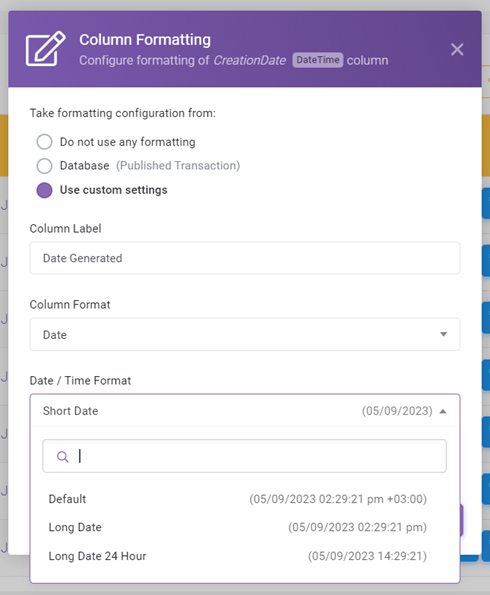 When you are done formatting the column, click on OK. The changes made will be applied to the applicaitons’ date page immediately.