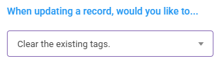 - Clear the existing tags: This option determines the general behavior for which tags will be applied to a record.