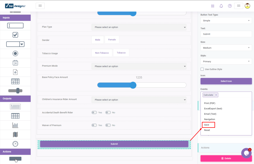 Next step is to add a Save Event to the Action Button.