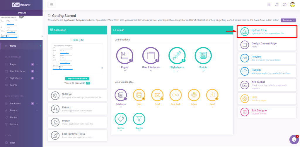 Save Excel workbook and go to your Applications page. Click on Go to Designer and go to Application module.