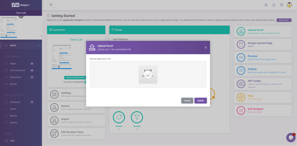 From this page you can update your Excel workbook.
