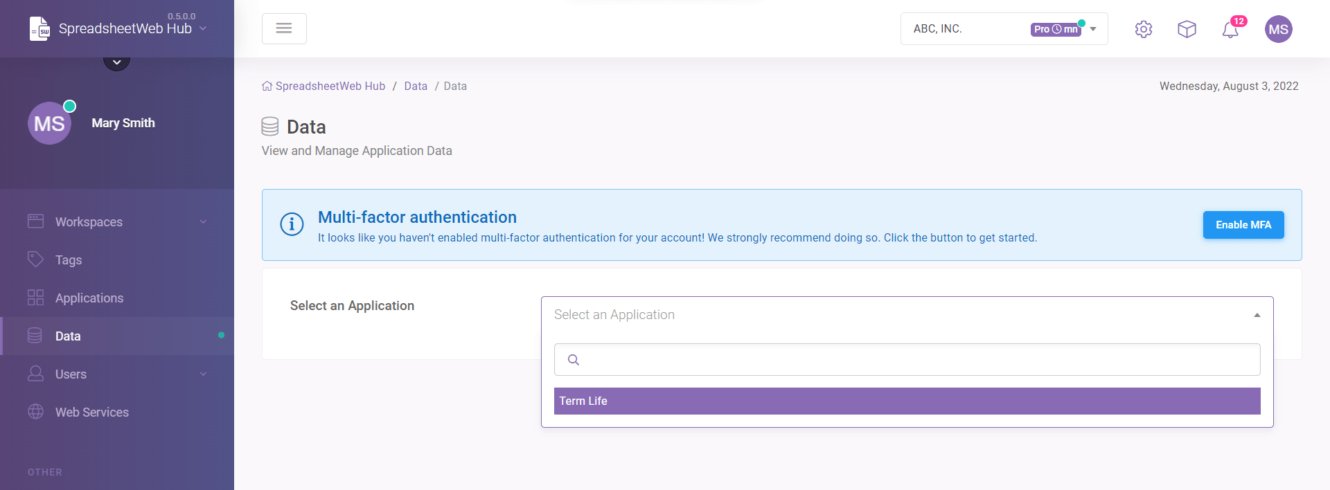 You can assign tags to specific records. To do that, go to Data page and choose an application from the dropdown menu.