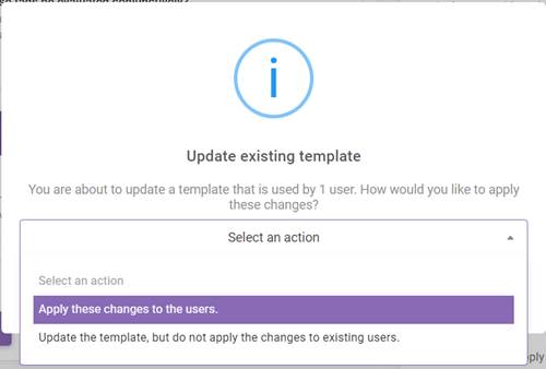 After created, identity templates can be edited and while updating the template, you can choose to apply or not to apply changes to assigned users. If you choose apply changes to users, assigned user’s workspace rights will be updated once the identity template is updated. If you choose not to apply changes to assigned users, those users will remain to have pre-defined workspace rights and changes will be applied to newly assigned users.