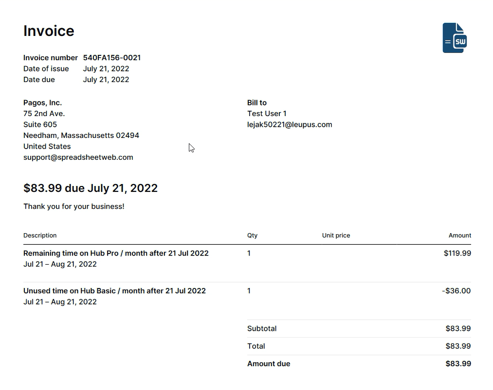 In SpreadsheetWeb Hub you can track your payments easily from Billing History page. To view your billing history, go to My Workspaces page and click on Edit button for the workspace in which you want to track your payments.
