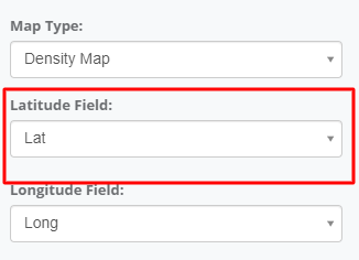 - Density Map: Density map is a type of heat map which plots values that match the selected latitude and longitude fields. Plot points will have different colors based on the magnitude of each value shown.