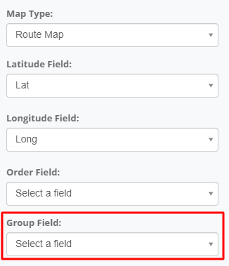 This is an optional field, and should only be selected if you want to display multiple routes. The coordinates will be grouped into multiple paths based on the corresponding Group Field items.