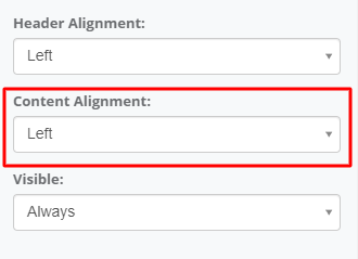 Aligns the column contents LeftRight, or Center. Selecting None will omit alignment rules.