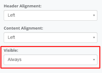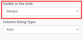 This can be configured as Always or Never to indicate whether the column is statically visible or not.