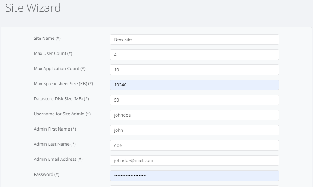 SpreadsheetWeb Sites are compartments of smaller sections under a license and this section is only accessible by the SystemAdmin user. Please note that this is only available in server or private cloud licenses.