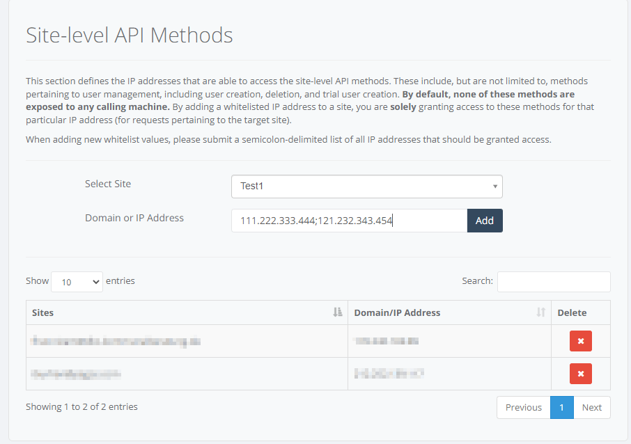 To authorize multiple domains or IP’s, use a semi colon between IP addresses. Click the Add button to submit your changes. Rule will be added to the table.